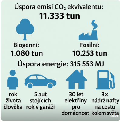 - → Úspora odpovídá cca 30 letům provozu jedné domácnosti z hlediska elektřiny.