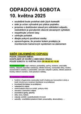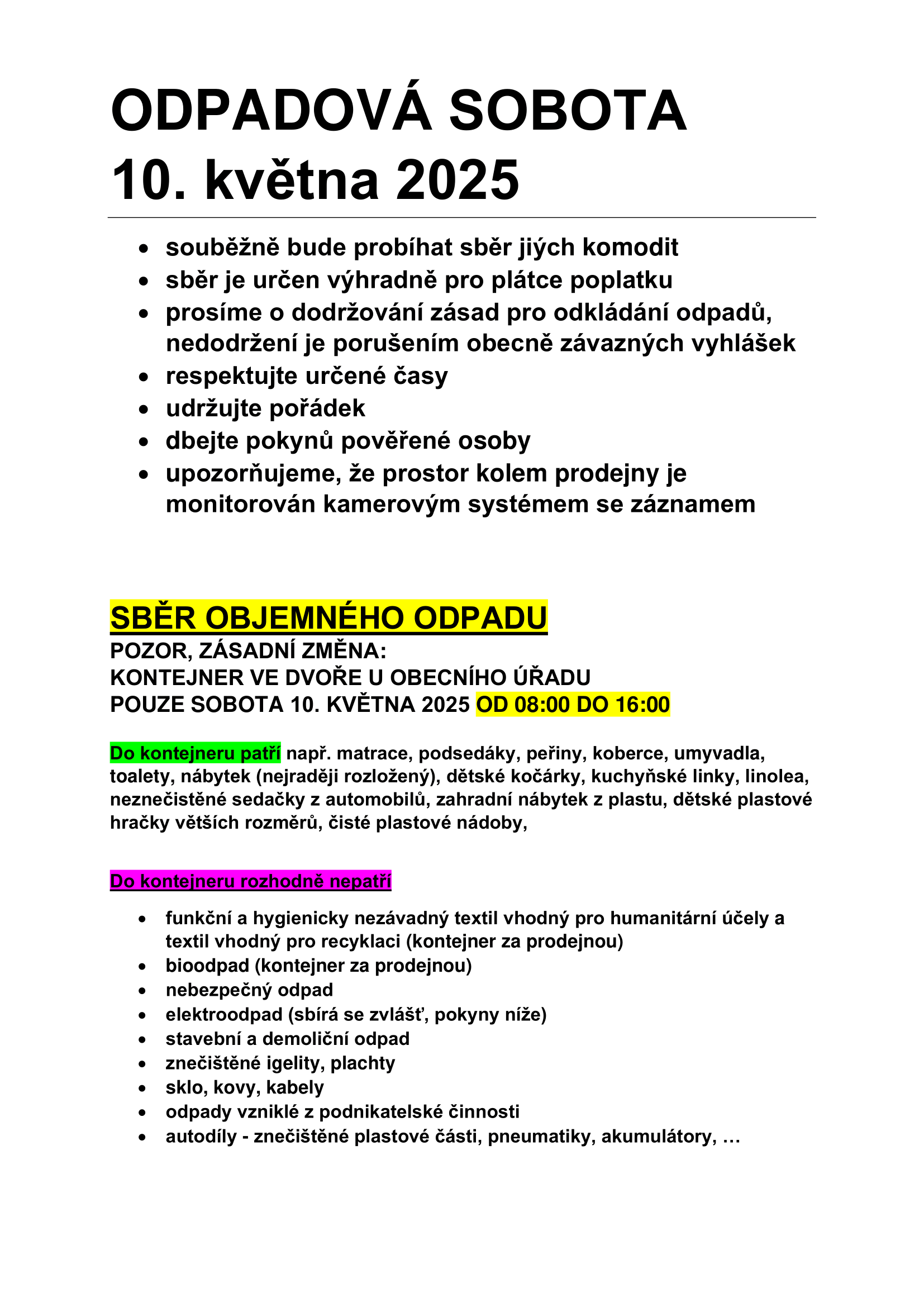 DNE 4. ČERVNA 2025 VSTUPUJÍ V PLATNOST NOVÉ OBECNĚ ZÁVAZNÉ VYHLÁŠKY OBCE Z OBLASTI ODPADOVÉHO HOSPODÁŘSTVÍ.
